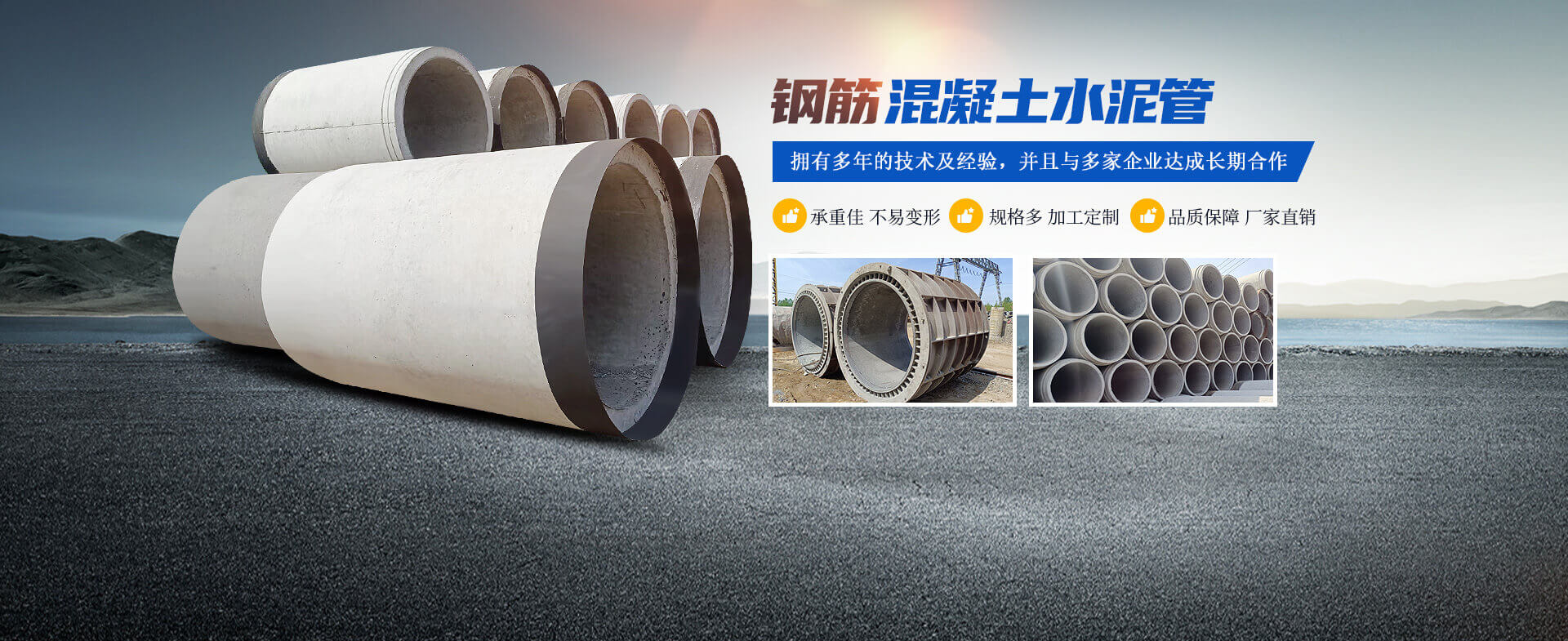 洛陽運曌建筑材料有限公司專于從事水泥制品開發(fā)、制作、生產(chǎn)、銷售、工程服務(wù)為一體的綜合性企業(yè)。主要生產(chǎn)鋼筋混凝土排水管、鋼承口頂管、承插管、平口管、雨污井蓋、路沿石、水泥預(yù)制板、仿木圍欄護欄系列、畜牧系列等混凝土水泥預(yù)制品。  我公司生產(chǎn)的鋼筋混凝土排水管是依據(jù)執(zhí)行標準GB/T11836-2023生產(chǎn)檢驗、擁有三條懸輥工藝生產(chǎn)線;型號300-3000;年生產(chǎn)能力達30000米左右,質(zhì)量是企業(yè)之本.........了解更多>>